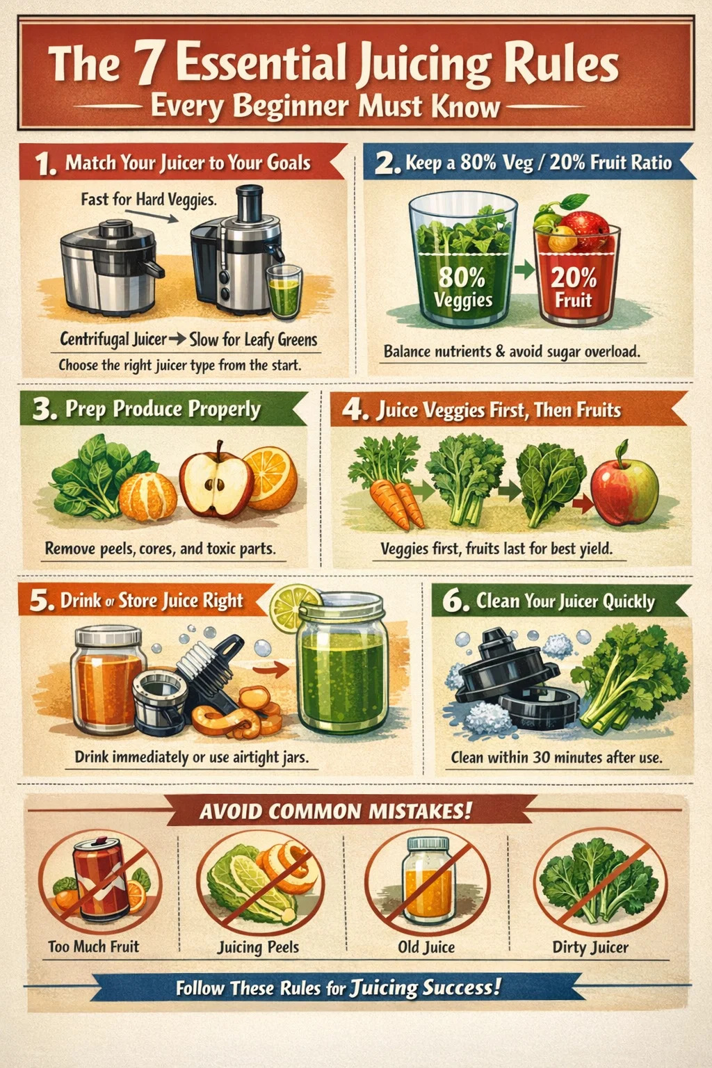 Common beginner juicing mistakes and which rule prevents each one