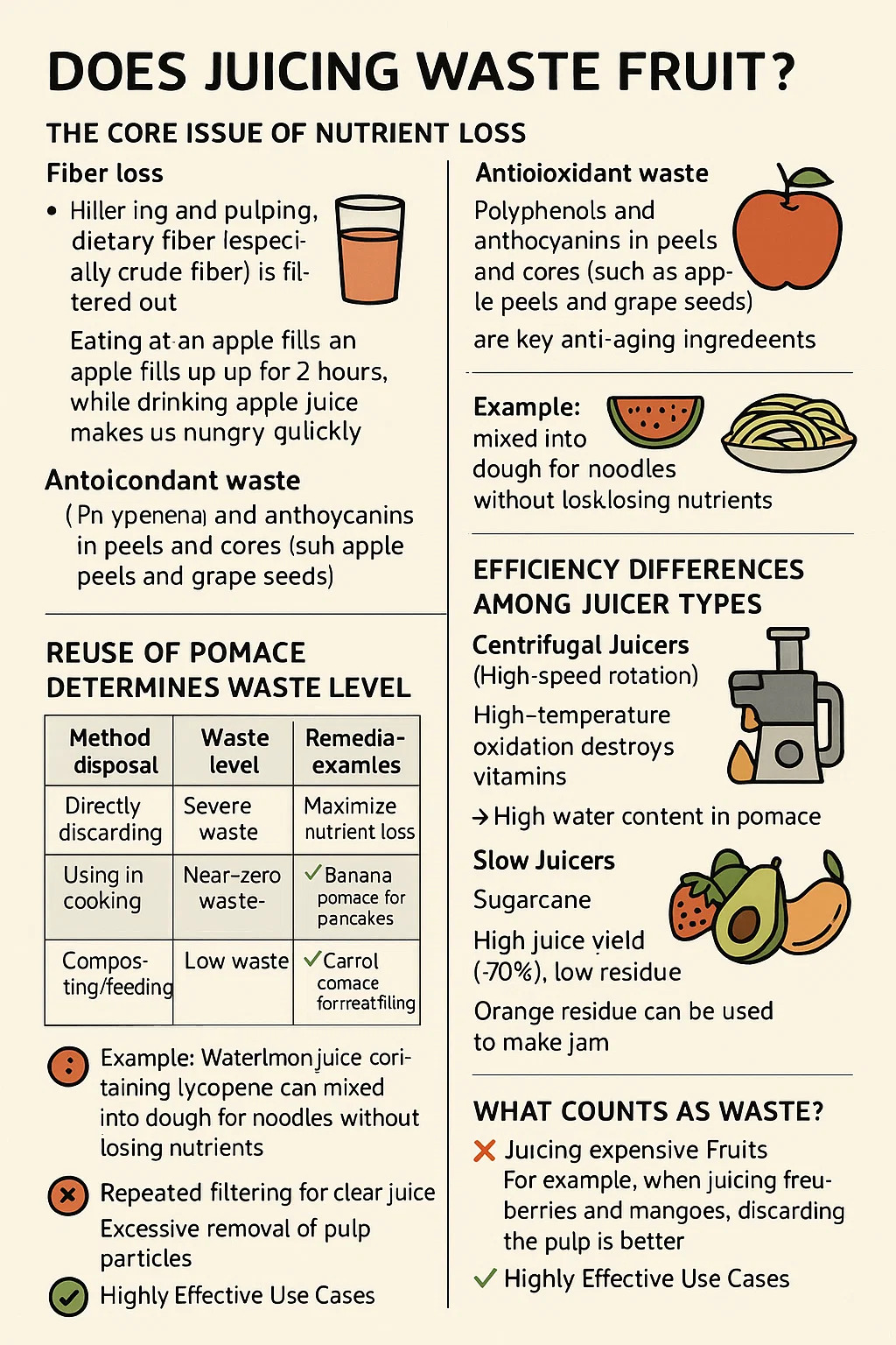 Медленные соковыжималки (экструзия): низкие температуры сохраняют активность ферментов, что приводит к более сухим выжимкам и сокращению отходов на 20%.