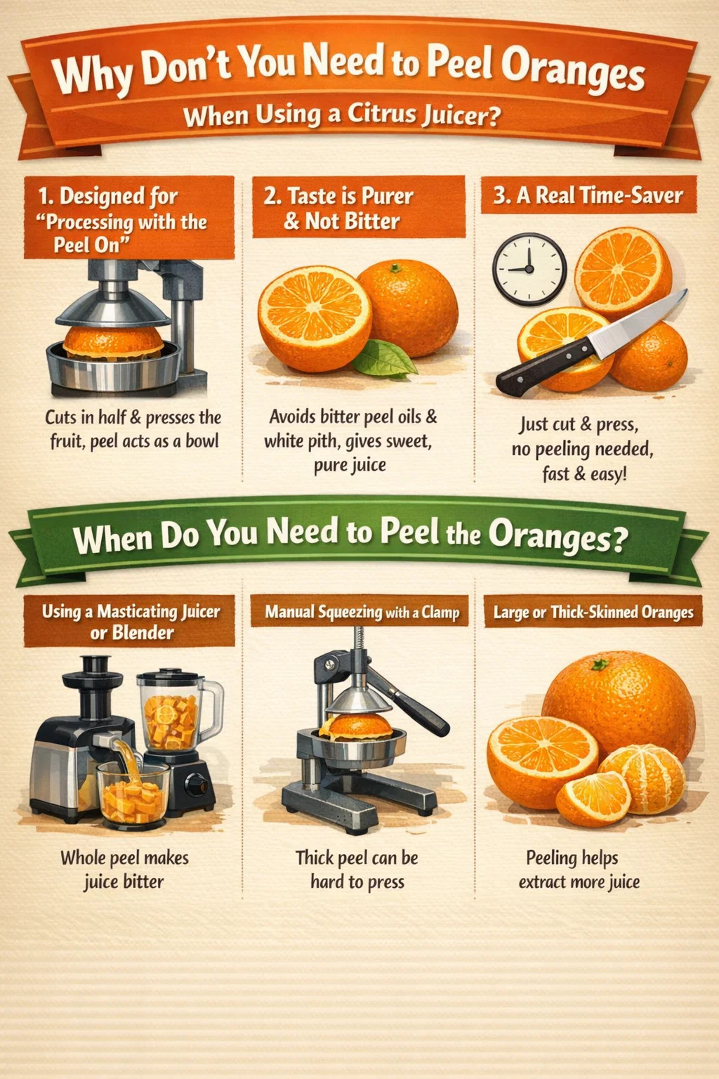 Это отличный вопрос, и ответ во многом зависит от типа используемой вами машины. Если вы используете специальную соковыжималку для цитрусовых, ответ таков: вам совершенно не нужно чистить апельсины!